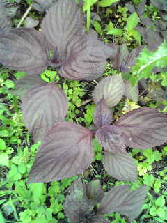 我が家の庭に草みたいに生えたシソの葉の写真も掲載しておきます。
